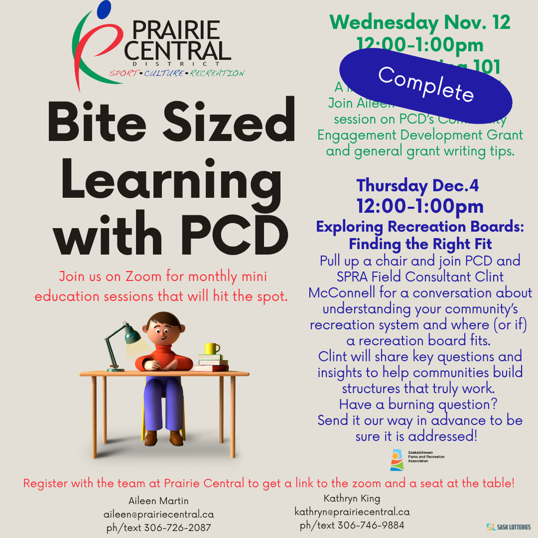 Join Clint McConnell, Recreation Consultant with SPRA, and the Prairie Central District for Sport, Culture and Recreation on December 4th for a virtual conversation about understanding your community’s recreation system and where (or if) a recreation board fits.